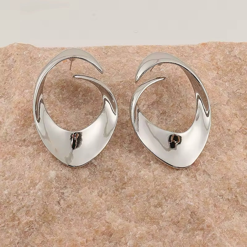 Découvrez nos boucles d'oreilles extravagantes et géométriques en laiton inspirées des dernières tendances des défilés français. De petits motifs irrégulièrement torsadés avec une finition de haute qualité font de ces boucles d'oreilles un élément élégant pour n'importe quel look. Parfait pour les femmes qui apprécient les bijoux de mode accrocheurs et uniques.