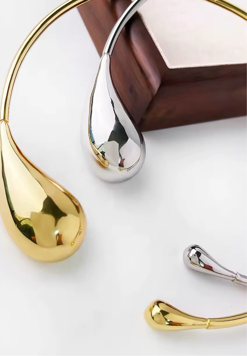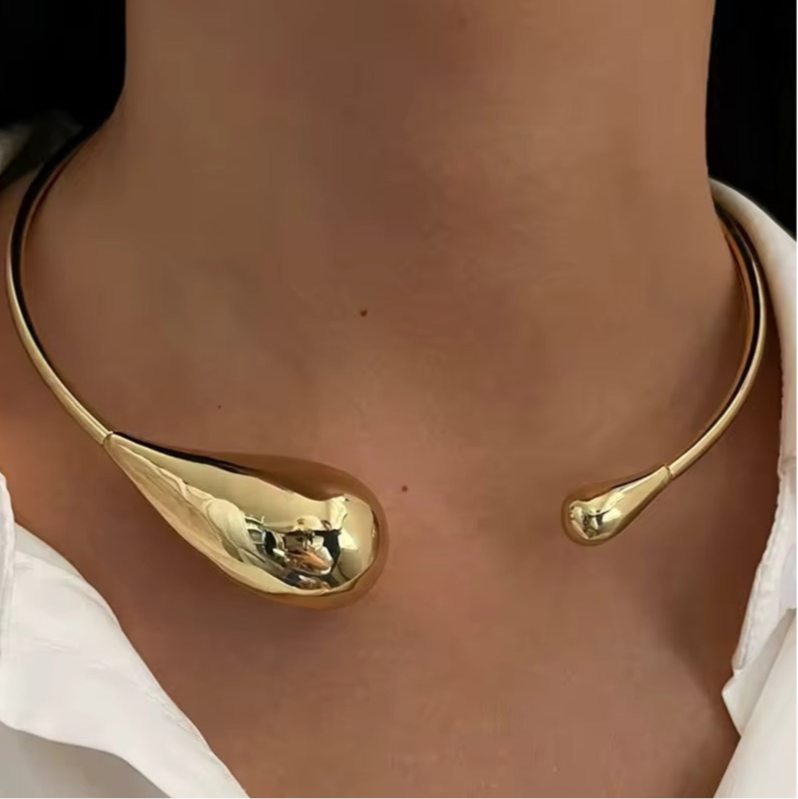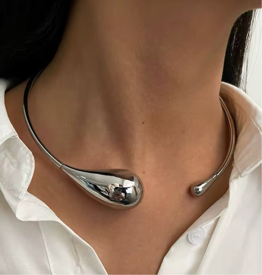 Diese unregelmäßige, klobige Halskette besticht durch ihre auffällige Wassertropfenform und verleiht deinem Look eine rebellische und elegante Note zugleich. Der offene Choker-Design sorgt für eine individuell anpassbare Passform, die jedem Hals schmeichelt.